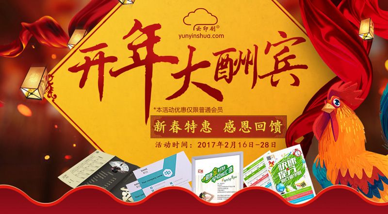 有句話說(shuō):好年頭必有好兆頭。2017,開(kāi)市好禮降臨!云印刷開(kāi)年大酬賓,印刷采購(gòu)大優(yōu)惠,和你一起走鴻運(yùn)。