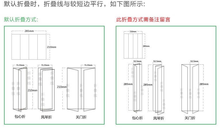 折頁(yè)傳單因?yàn)轶w積小,便于攜帶而深受廣大商家的所愛(ài)。尤其是三折四頁(yè)傳單,合理的排版能使宣傳單,擁有更多的信息內(nèi)容,但是仍有不少商家和廣告設(shè)計(jì)人員對(duì)折頁(yè)的尺寸不了解。本文將簡(jiǎn)單介紹下三折四頁(yè)傳單的尺寸:目前市面的三折四頁(yè)常用有三種,標(biāo)準(zhǔn)印刷尺寸:(A4)210mm x 285mm; 將長(zhǎng)邊分為三等分,既折頁(yè)每面尺寸為: 210mm X 71.25mm。