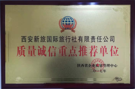 4、口碑良好,信譽保證。西安新旅國際旅行社是中國旅行社協(xié)會會員單位,陜西省《質(zhì)量誠信重點推薦單位》和《陜西省AAA級信譽單位》,西安市旅游局推薦的《旅行社責(zé)任保險全國統(tǒng)保示范項目參保單位》。在國內(nèi)外游客中和旅游業(yè)中有良好的認同感和好評,在國際上建立了良好的口碑和信譽!