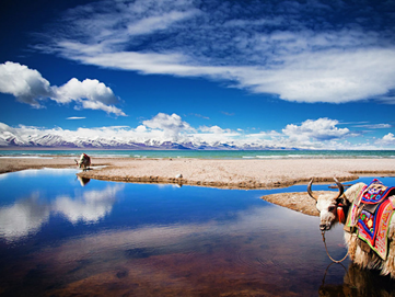 早餐后乘車延青藏線西行轉(zhuǎn)北赴西藏三大圣湖之一的【納木措】(游覽時間1小時)——海拔4718米,它是世界上海拔最高的咸水湖,它位于唐古拉山脈西南腳下,有如鑲嵌在藏北草原上一顆無暇的翡翠。湖的盡頭是白雪皚皚連錦的雪山,和藍天下茵茵草地,朵朵羊群以及帳篷里飄出的裊裊欽煙,象是到了遠離城市喧器的仙境。之后返回拉薩。