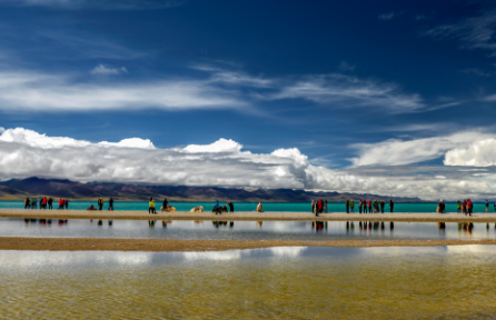 早餐后乘車延青藏線西行轉(zhuǎn)北赴西藏三大圣湖之一的【納木措】(游覽時間1小時)——海拔4718米,它是世界上海拔最高的咸水湖,它位于唐古拉山脈西南腳下,有如鑲嵌在藏北草原上一顆無暇的翡翠。湖的盡頭是白雪皚皚連錦的雪山,和藍(lán)天下茵茵草地,朵朵羊群以及帳篷里飄出的裊裊欽煙,象是到了遠(yuǎn)離城市喧器的仙境。之后返回拉薩。