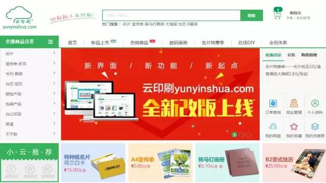 元旦來臨之際,云印刷網(wǎng)(www.beijingbanzhao.com.cn)經(jīng)過三個多月緊鑼密鼓地設(shè)計、修改、測試,終于趕在2016年的尾巴完成了華麗轉(zhuǎn)身,成功改版上線,以嶄新的面貌面向大家,站在新的起點為用戶帶來更卓越的購物體驗。